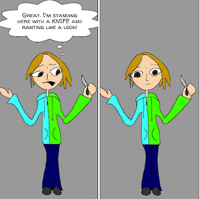 I realized he wasn't backing off a moment later. His arms were pushing me in to the window, and I was tempted to kick him in the 'nads. Instead, I bent quickly under his arms, easily breaking his grip, and picked up the fallen soda. I took a step away. "Oh good," I said, "It didn't break open." I think I did a good job pretending I hadn't noticed his aggressive pass at me.